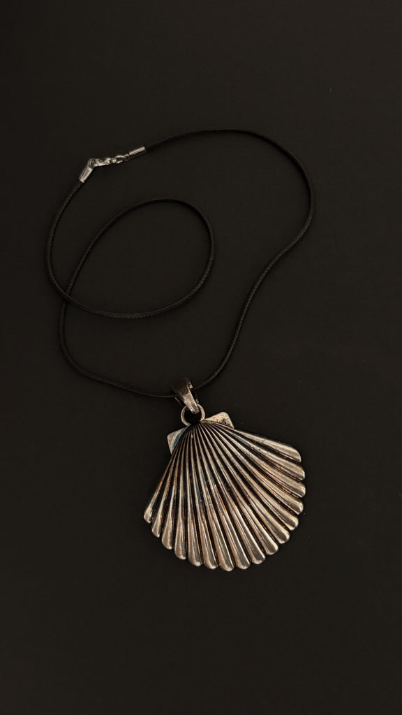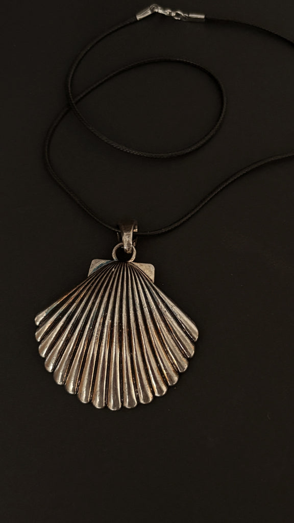 A one-of-a-kind vintage statement piece that blends raw earth tones with elegant craftsmanship. This necklace features a natural stone pendant framed in a scalloped gold-toned bezel, suspended from a twisted rope chain with a secure hook clasp. Its subtle patina and organic texture tell the story of decades past, making it the perfect piece for layering or wearing solo.