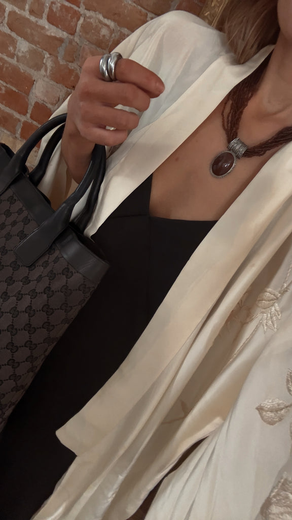 Each stone carries its own unique pattern — no two are ever the same. Elegant yet earthy, this pendant adds an effortless vintage charm to any outfit, from a silk blouse to a simple black cami. A true heirloom-style piece with a touch of bohemian luxury.