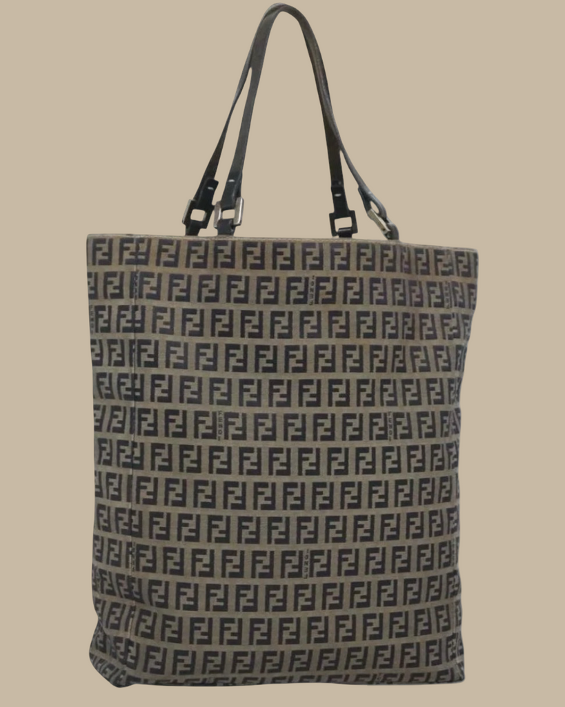 Vintage Fendi Zucchino Canvas Tote — Navy & Silver