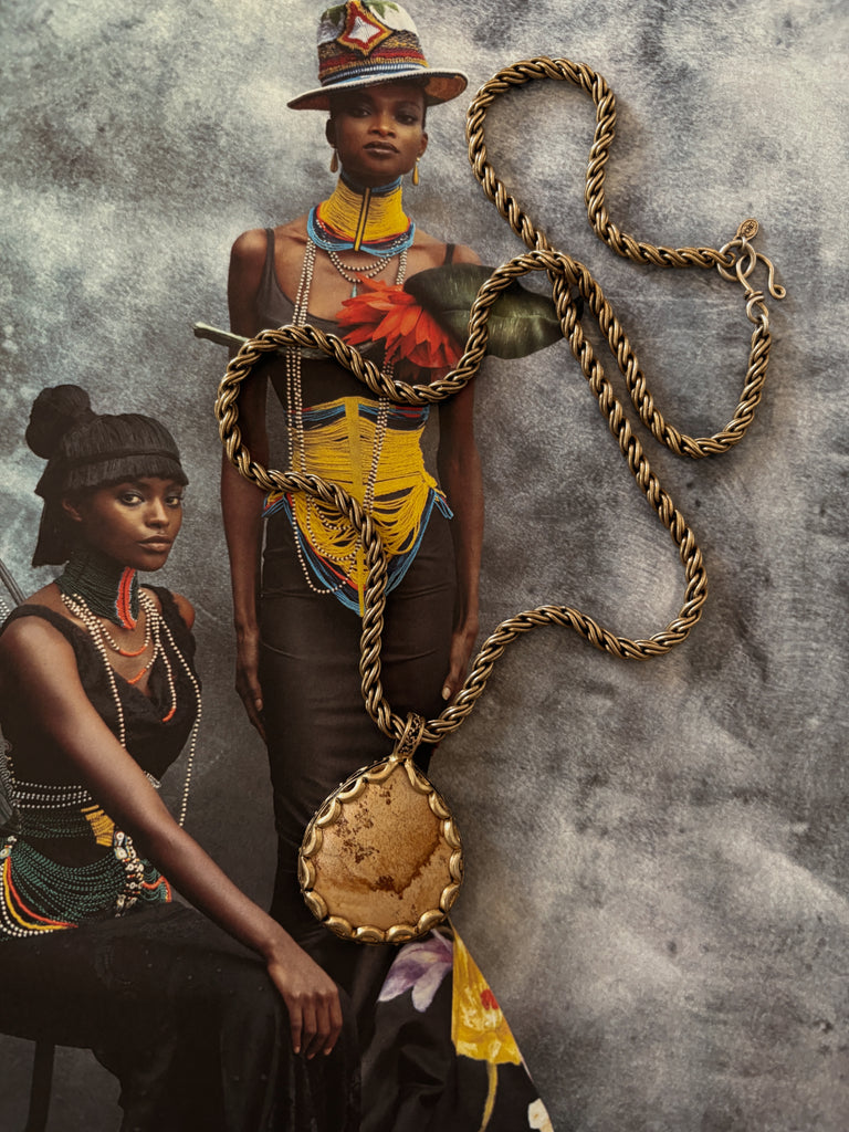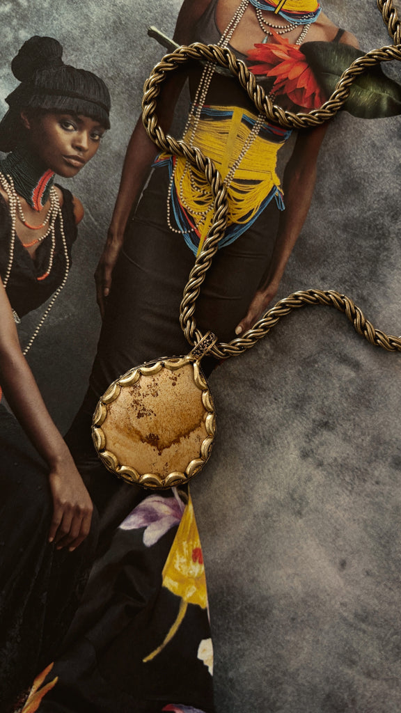 Each stone carries its own unique pattern — no two are ever the same. Elegant yet earthy, this pendant adds an effortless vintage charm to any outfit, from a silk blouse to a simple black cami. A true heirloom-style piece with a touch of bohemian luxury.