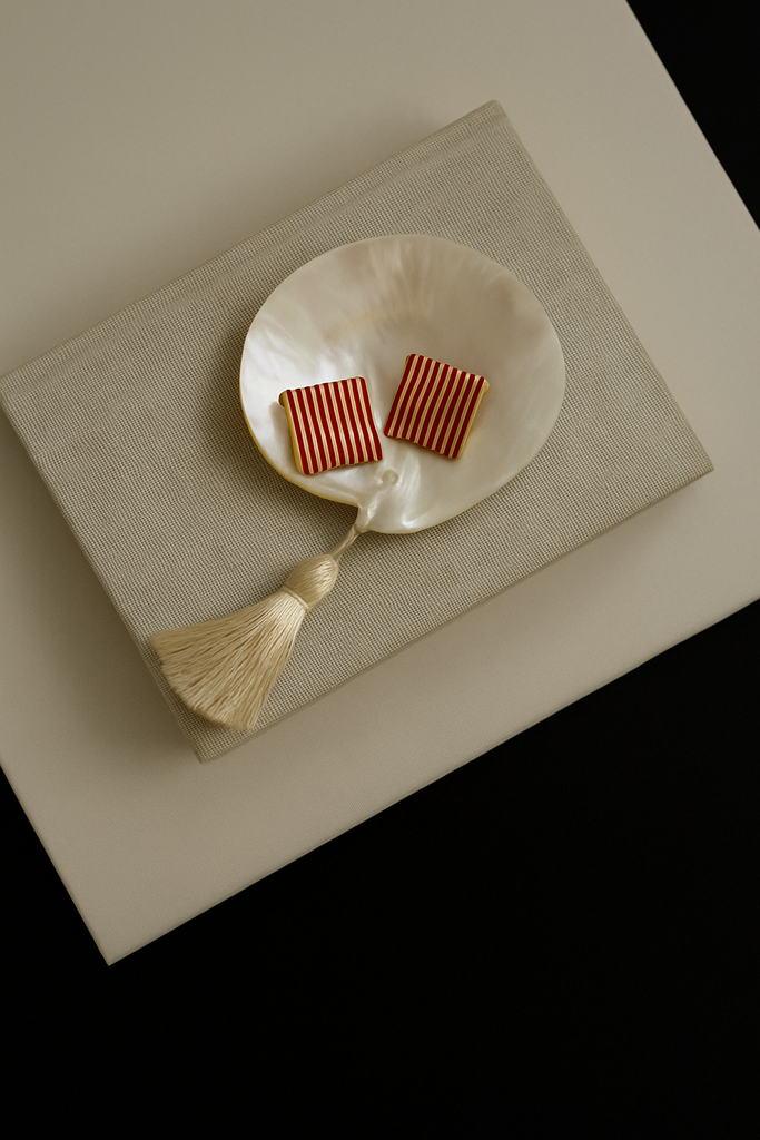 Red Gold Vintage Square Earrings